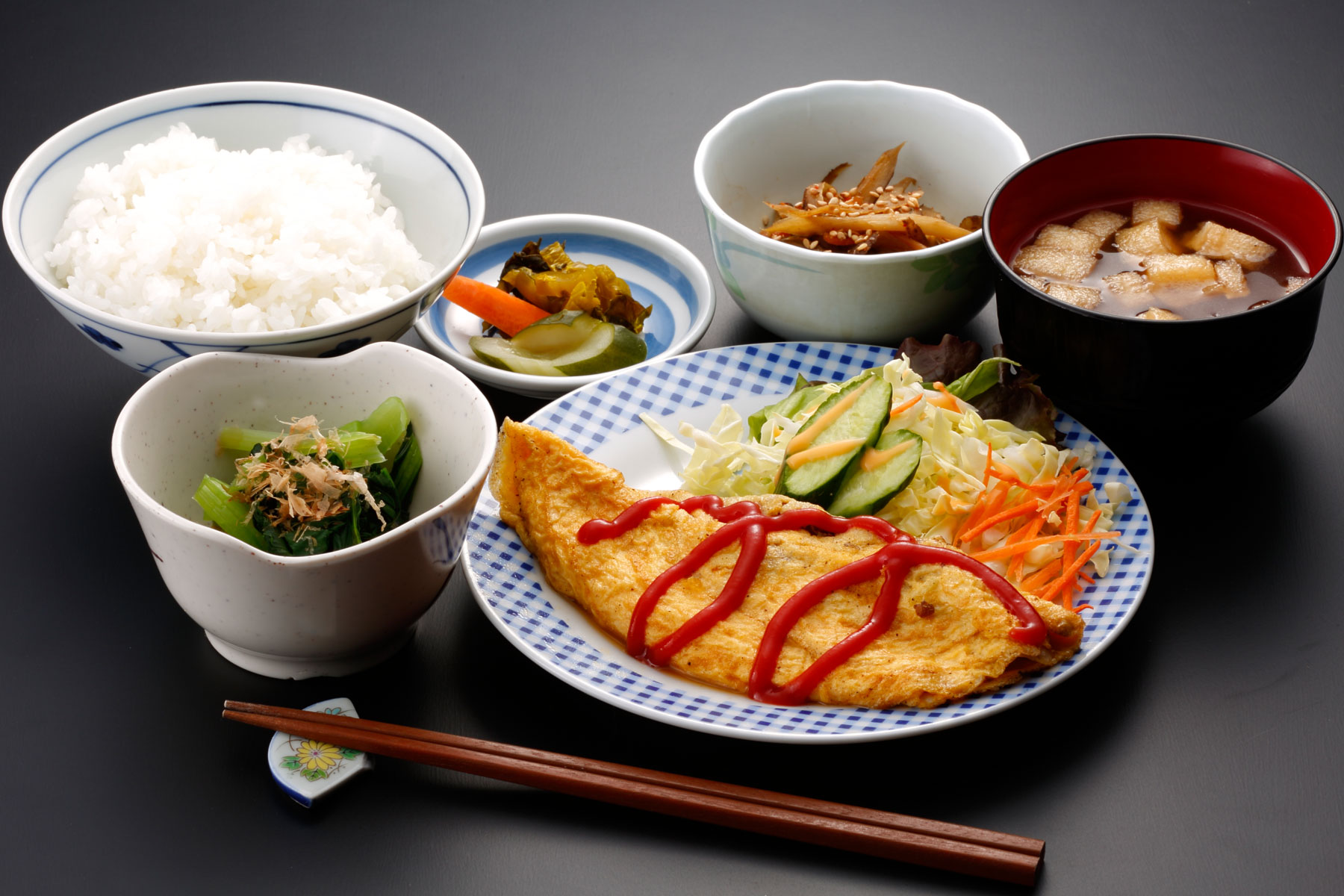 ご飯・味噌汁・その日のおかず・小鉢2種類